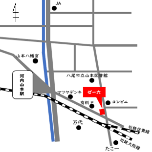〒581-0867 大阪府八尾市山本町1丁目8-17 山本八幡宮駅前ビル1F